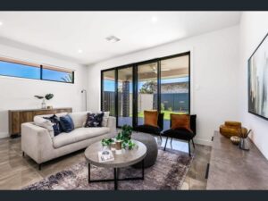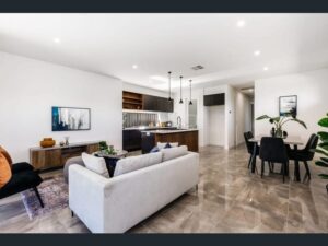 This single story Torrens Title property boasts an entertainer’s kitchen with island bench quality 600mm appliances and stone benchtops, 3 bedrooms including the master bedroom with walk in robe and ensuite. The rear alfresco can be found through the glass sliding doors leading from the open plan lounge and living area bringing indoors and outdoors together.
